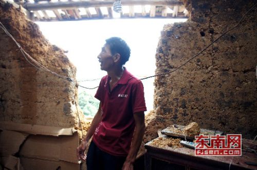 村民黄瑞金的家受灾严重,墙壁破了个大窟窿