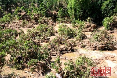 在及时自救的情况下,家人平安无事。但当他赶往自己的农田时,现场的那幕他惊呆了。“我的农田变成了三、四米高水潭,种的青枣树和芭乐树全在水底,损失了30余万元。”