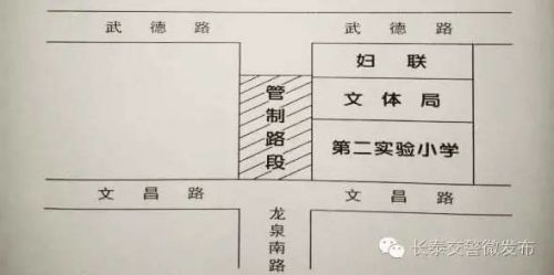为确保学生上下学交通高峰期通行安全,从2016年10月10日起,龙泉南路与文昌路交叉路口至龙泉南路与武德路交叉路口路段将实行交通管制,管制时间为上午上下学、下午放学高峰期各30分钟左右;期间禁止所有汽车类车辆通行、停放。接送学生的汽车类机动车辆请停放到武德路,文昌路和龙泉南路请勿停放。请接送学生的家长自觉配合现场交警指挥,确保行车安全。