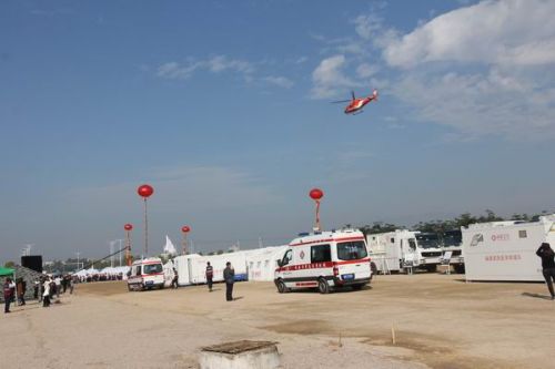 省卫生计生委按照省地震医疗卫生救援应急预案,立即启动卫生应急Ⅱ级响应。接到紧急救援任务的四支队伍均按规定要求在2小时内完成了卫生应急队伍的集结、补给。各自向灾区开进。由于现场救援能力有限,指挥部调动直升机紧急转运伤员。在一系列紧锣密鼓的救援工作结束后,卫生应急救援演练圆满结束。