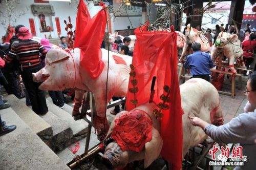 闽南长泰县都要举行千年民俗“赛大猪祈丰年”大赛。