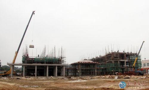 连日来,施工人员抓住晴好天气,在漳州市(东山)示范性综合实践基地加紧施工(如图)。该工程于2015年10月动工兴建,总投资4931万元,总建筑面积12000平方米,其中AB区两幢5层学生宿舍5200平方米,一幢主题教育中心大楼6800平方米。截止4月底,AB区1-5层学生宿舍楼、主题教育中心大楼B区三层板已全部封顶,附属设施建设完成70%以上,主体工程建设预计今年底竣工。
