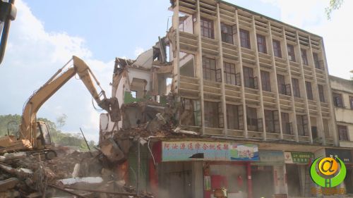 4月27日,记者在拆迁现场看到,执法部门在现场拉起了警戒线,沿街店铺内已经清空,大型挖掘机挥动手臂对危旧建筑进行最后的破拆工作。据悉,旧粮食片区拆迁工作将在这两天内完成,接下来将着手对县旧医院宿舍楼进行拆迁。