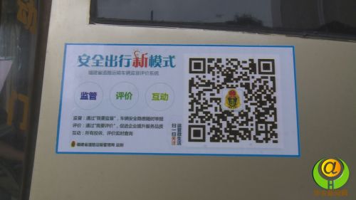 从5月4日起,我县所有营运客车都有了“身份证”。每辆营运客车在车门、车窗等醒目位置都张贴上了车辆信息二维码,接受公众监督评价。