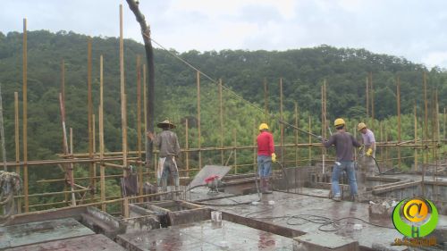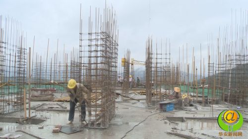 在映山红项目的5、6号住宅楼施工现场,记者看到数十名工人忙着浇灌水泥、搬运建筑材料等,而在另一边的1、3、4号住宅楼,工人们也忙着进行楼房内外装修工作,整个施工现场忙而有序。