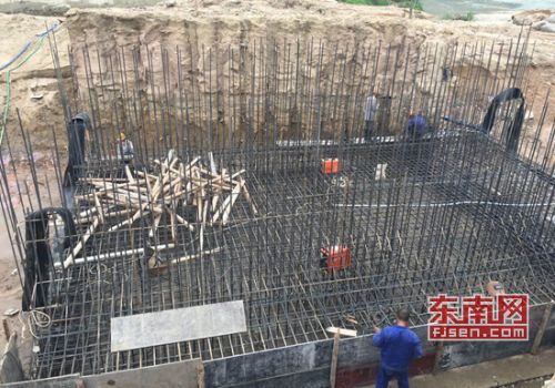 连日来,在九龙江北溪中游华安段二期防洪工程黄枣段防洪堤水闸施工现场,工人正绑扎钢筋。