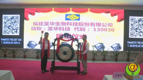 仪式上,副县长叶文辉与企业负责人林坤华在大家的共同见证下,一起敲响了铜锣。海峡股权交易中心总经理张赞松为企业授牌。这标志着福建圣华生物科技股份有限公司在海峡股权交易中心成功挂牌。