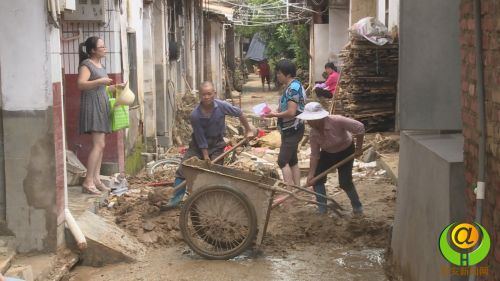 记者见到林西洪时,他还在河道旁的小巷里协助村民清理淤泥、杂物。据林西洪介绍,这个片区是他负责的小组,因为离河道近,村里有很多行动不便的独居老人,所以15日凌晨一接到灾情电话,他心里立马想到了这些老人。由于当时大部分村民还在睡梦中,他赶紧挨家挨户去叫醒村民并把行动不便的老人背到高处安全地带,直到确认村里低洼地带没有人员,他才松了口气。此时暴涨的河水已漫过人的腰部,他家一楼也被大水淹没了一米多高。