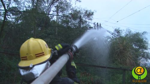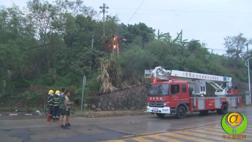 华安:电线杆突然起火 消防大队紧急救援(图)