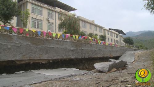 上雪新村村民黄秀芬:“大约在10月31日早上八点半左右,听到砰了一声,非常大声,每个人都非常慌张。出来一看,是水泥路裂开了。现在影响到我住的房子了,地基已经全部裂开了,现在房子不能住,住在村部。”