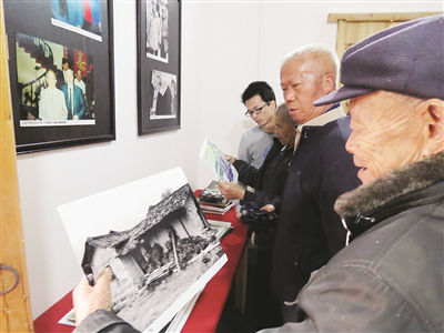 村里81岁老人汤仁福端详老照片