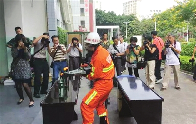 10月29日,龙海市公安消防大队来了一群手拿“长枪短炮”的特殊客人——龙海老年大学摄影协会的发烧友,他们零距离体会消防工作。三节拉梯与挂钩梯连用操,机械切割钢丝、开酒瓶盖、夹乒乓球、液化气火灾扑救、油盆灭火…… 消防战士的精彩演练被摄入大爷大娘们的相机镜头。(邓娜 摄影报道)