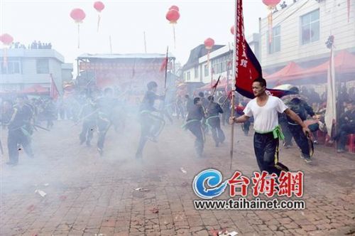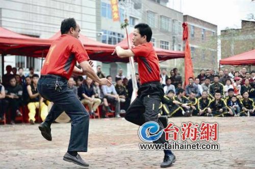 昨日,龙海市颜厝镇路边村浦园下社举办了双发登龙堂建馆123周年暨太祖拳青龙阵福建省非物质文化遗产申遗成功4周年庆典。双发登龙堂武师们展示的“太祖拳青龙阵”,变幻莫测,引得来宾阵阵叫好。