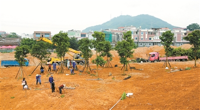 5月11日,龙海市榜山镇“龙江颂歌”主题项目核心工程工地上,工人们正忙碌着宝珠岛上的树木种植等绿化收尾工作。目前,主题项目核心工程的古窑陶艺文创园和龙江文化园已进入收尾阶段。其中,龙江风格展示馆布展正在设计中,陶艺文化研究展示馆、陶艺工坊、DIY工坊等即将投用。