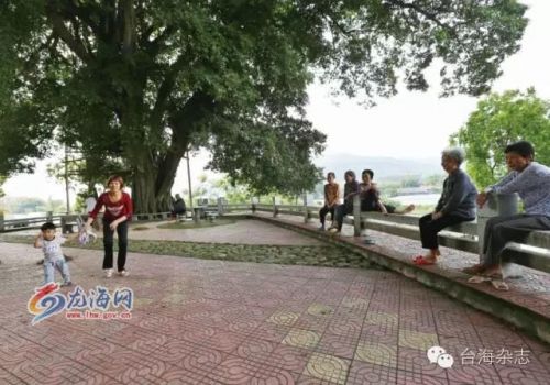 《台海》杂志记者继续在村里走着,寻找不期而至的风景。突然,一棵枝繁叶茂的大榕树出现在我们眼前,走近一看,这棵几人合围才能抱住的大树,树干上挂着一块保护牌,上面资料显示龙海市政府于2012年立牌,当时测算树龄约有380年。大树下,几套健身器材井然有序地排放着,有老人在聊天,在锻炼,画面非常之闲适惬意,那一瞬间让人仿佛回到了厦门某个小区,唯一的不同是这里坐拥一棵难得的百年古树。