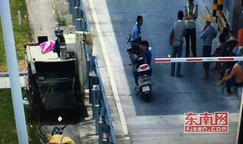 龙海十余村民开收割机欲上高速 收费站工作人员劝离