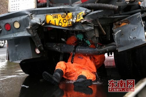 “砰”随着一声巨响,在沈海高速漳州龙海白水服务区往漳浦方向约2公里处,一辆载有30吨强腐蚀性液碱的槽罐车被后车追尾,罐体破裂,液碱开始泄漏,如果不及时处理,后果将难以想象。
