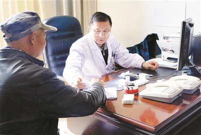 漳州市175医院血液病科主任王玮(右)在给患者看病。新华社发