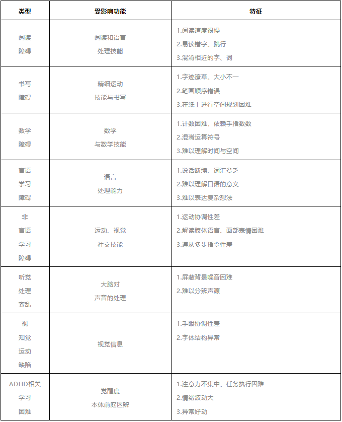 学习障碍通常会出现于学龄早期,常与神经发育性障碍(ADHD、发育性协调障碍、孤独症谱系障碍)或其他精神障碍(焦虑障碍、抑郁症等)共同出现,容易混淆。