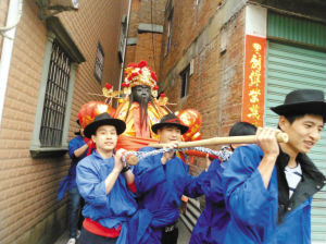 3月3日,正月十三,南靖县靖城镇部前村部前庵举行“谢府王公”出巡仪式。这天,“谢府王公”将被轿抬出到本村四处巡视,保佑合境平安,风调雨顺,五谷丰登。
