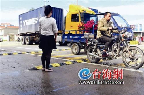 为了避免悲剧发生,该公司已投入10多万元,陆续在厂区门口设置监控摄像头、橡胶减速带、人形横道标志、落地爆闪提示灯等。“但这些远远不够,爆闪提示灯甚至被多次撞飞,曾有一辆车冲进路边平房,造成1人死亡。”该负责人说,为了安全,前不久他向有关部门申请设置该橡胶减速带。