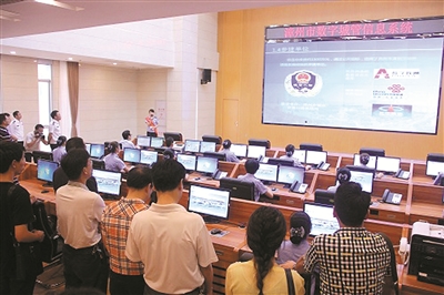 漳州数字化城市管理信息系统建成后运转顺利,广大漳州市民可以拨打城市管理服务热线12319,反映和举报城市管理问题。图为数字城管指挥中心一角。