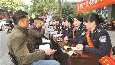 市城管执法局联合市直联动单位在市区延安北路“摆摊设点”,开展110联动宣传日活动。