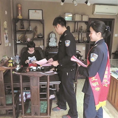 日前,漳州市城管执法局直属一大队、指挥中心、“闲来管事”理事会人员组成宣传组,在市区胜利路开展美化市容志愿服务行动。宣传组沿街发放告知书,要求沿街商家共同营造整洁、美观、有序的市容环境。(庄文剑 摄)