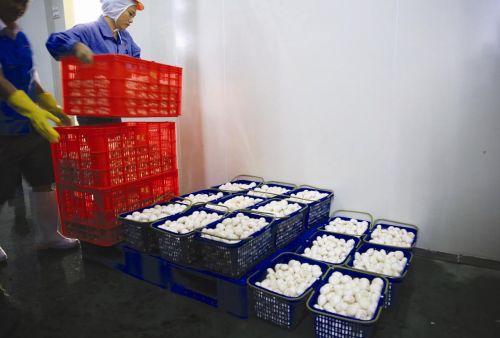 “公司从去年开始建设双孢菇生产车间,借鉴了欧洲先进工艺,在生产设备和温度、湿度控制上,实现了机械化、智能化操作。费这么大心思打造这么好的条件,到今天终于看到了成果。”王翠娟说,目前,该公司一期项目已经投产,第一天生产了鲜菇1.5吨,第二天预计可以采摘5吨左右。
