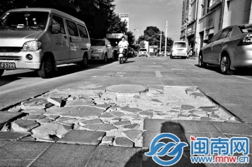 闽南网8月5日讯 昨日,市民黄先生拨打海都热线通95060说,漳州明发商业广场北侧写字楼下,近百米的过道上就有几十处的破损。