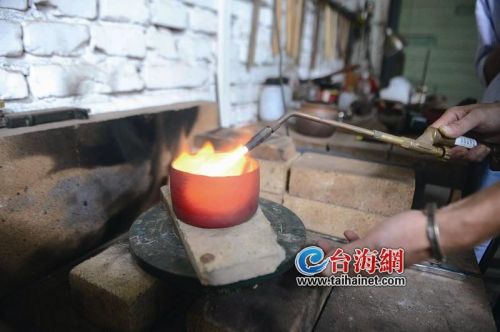 漳州市区一间大厂房内 数万次锤打炼就一把铜壶