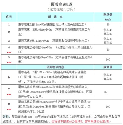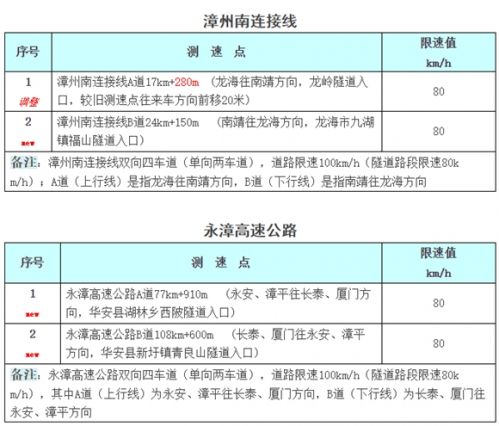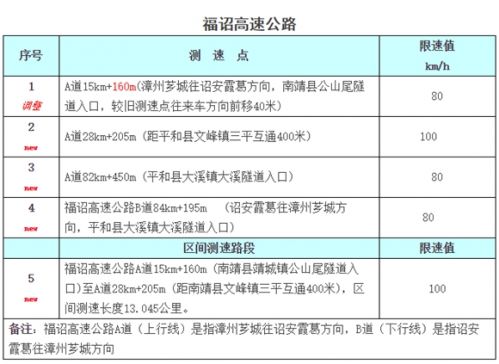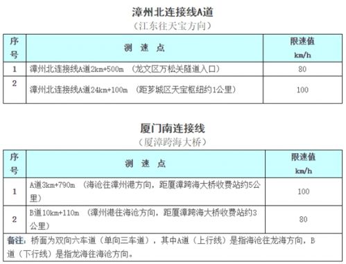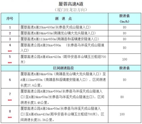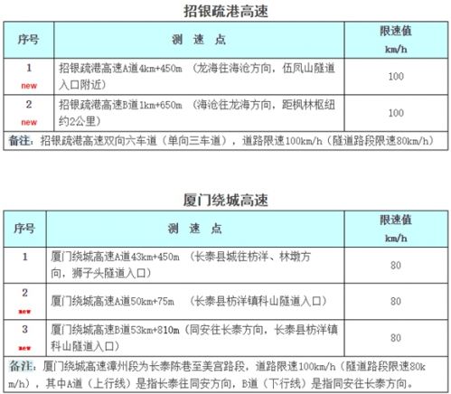 其中,厦蓉高速、福诏高速、永漳高速、东山连接线等路段共新增19个测速点段;沈海高速共12个测速点段限速值提高;此外福诏高速、漳州北连接线等共2个测速点位置略微调整。
