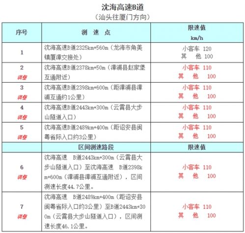 各个测速点段具体位置和限速标准公布如下(以下所称“小客车”为7座及以下小型客车,“其他”为7座及以下小型客车以外的其他车辆):(记者 王亚男 实习记者 王婷 通讯员 林承发)