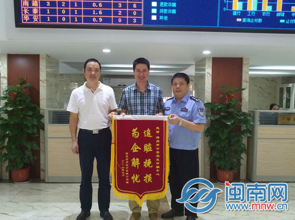 闽南网6月23日讯(福建日报新媒体·闽南网记者 王惠敏)入侵邮箱、修改账户、诈骗货款……这种经常在影视剧中上演的黑客诈骗桥段,在漳州也真实发生了。6月22日下午,位于漳州长泰的一家电子公司特地送一面锦旗到漳州市反诈骗中心,对挽回其客户14多万美元货款表示感谢。漳州市公安局党委委员、刑侦支队支队长纪建仁,中国人民银行漳州市中心支行副行长伊志峰接受锦旗。