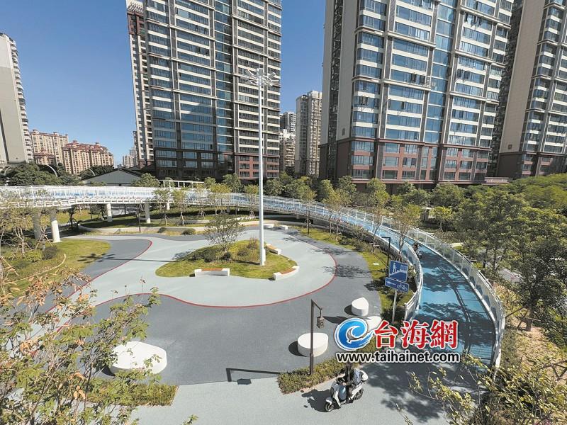 据了解,该座天桥全长约43.2米,桥面宽度5.5米,预留了非机动车的通行空间,骑行者可直接骑行上桥,实现安全、顺畅的分流通行,有效破解丹霞路—江滨路交会处“过街难”的问题。此外,桥下空间引入了海绵城市设计,打造出近4000平方米下沉式绿地和雨水花园,充分发挥生态滞留与雨水调蓄功能,实现了交通功能与生态景观的有机融合。(海峡导报记者 赖雅红 文/图)