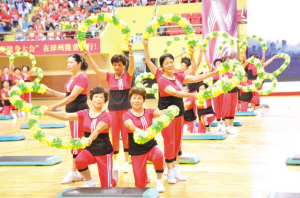 健身创新项目筋骨拉伸操《绿色好心情》。记者 张伟斌 摄