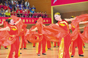都说高手在民间,一条再普通不过的宽边松紧带,在一群50多岁阿姨的手里变成了跳健身操的工具。几十条颜色艳丽的松紧带,随着律动在阿姨们手中呈现出各种造型,不仅动作优美,还能伸筋健骨。“我们准备好几个月啦,9月份刚来漳州交流表演过,第二次来感觉很亲切呢。”这个独具一格的筋骨拉伸操早前参加过“2014年全省老年体育健身创新项目总展示交流活动”,最终与厦门太极拳一起,夺得优秀创新项目金奖。