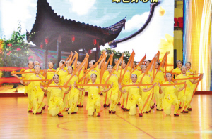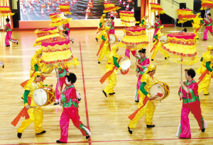 大鼓凉伞《龙江鼓韵》。本报记者 林忠 摄