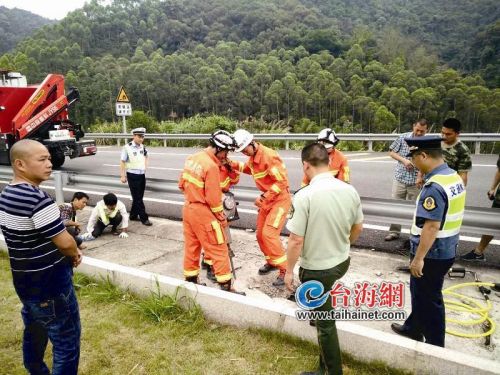 消防人员先通过暗渠上方的长条透风口,询问被困者,得知他下半身无法使力,并且有剧烈疼痛感。根据现场情况,漳州高速交警五大队筹备组民警配合救援,对B道进行了交通管制。消防人员则利用凿岩机在被困者上方左侧5米处,进行破拆水泥板,同时用手动钢筋剪将周围的钢筋剪断。