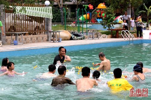 现场,户外爱好者个人或者家庭分组参加水中浮球争夺赛,在农庄的泳池里,双方你争我抢,比赛过程笑声不断,随后,紧张的积水比赛,刺激趣味的体验山泉漂流等活动让户外爱好者直呼过瘾。