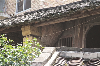 平和老民居房檐下箩筐般马蜂空巢 令人啧啧称奇