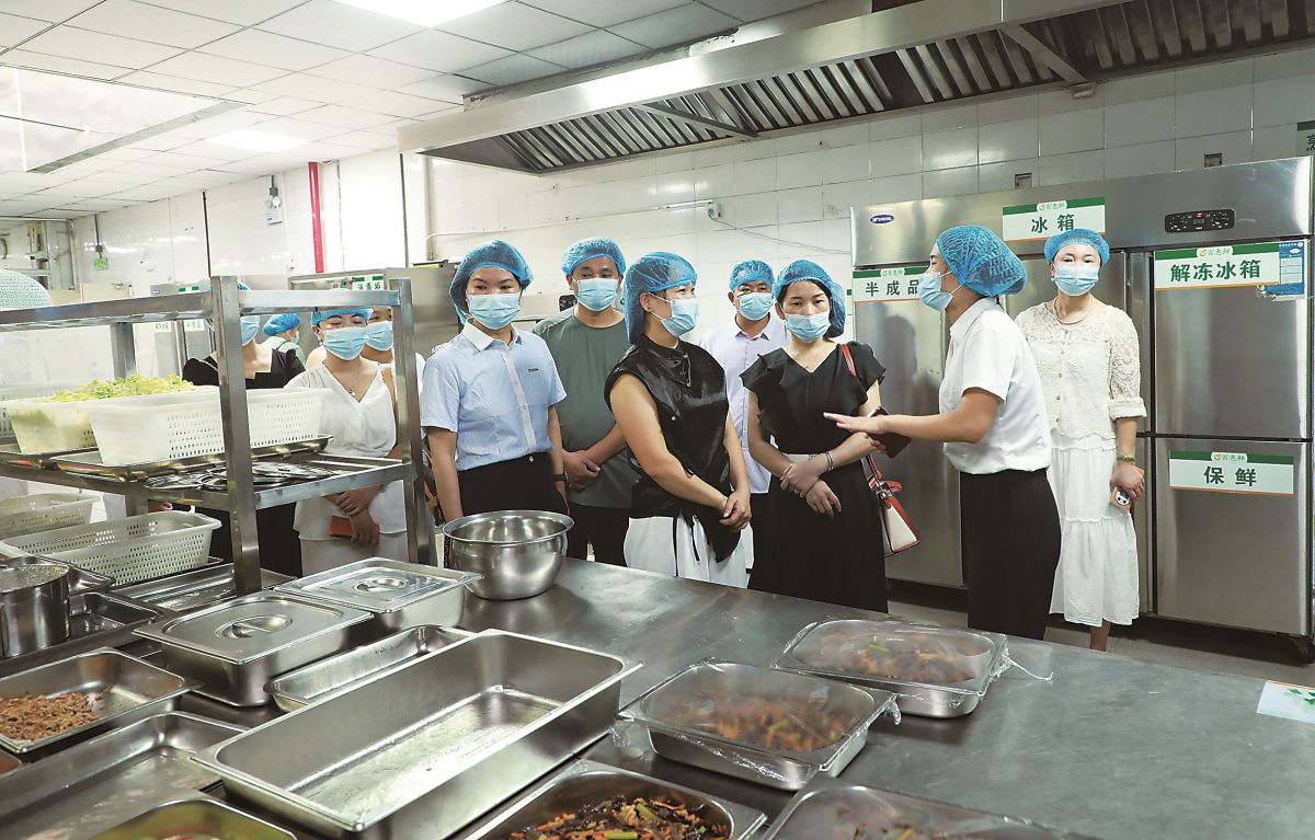 家长代表参观元光中学食堂,体验学生餐。