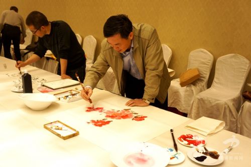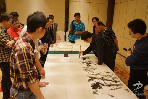 两县艺术家还现场进行了书画、剪纸创作互动,就创作理念、技法深入交流、切磋。(戴裕辉)