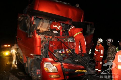 3月22日凌晨4时7分,漳浦消防大队接到报警:沈海高速赵家堡出口往漳州方向1公里处,两货车发生追尾,有人员被困。接到报警后漳浦消防大队立即调派赤湖中队出动1辆抢险救援消防车、6名消防官兵赶赴现场施救。