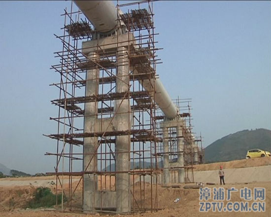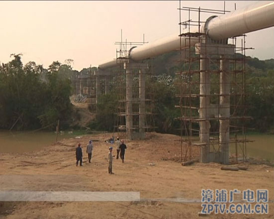 而在云霄县火田镇车东村的施工现场,跨车东溪的管桥建设已经架起了4跨管桥。整个工程需要安装10跨长23米的管桥,预计本月底可以全部完成。