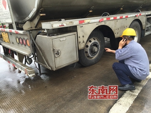 由于运载易爆物品,且缺少部分配件,为确保安全,在收费员的协助下,经过半小时的修理,暂时驶离入口车道,停靠在安全位置,等待漳州派遣的维修专员进行检测维修。